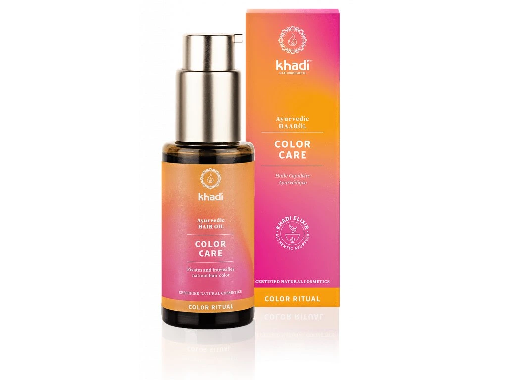 Tajemství Khadi vlasového oleje Color Care spočívá v mocném účinku Khadi elixíru: pomocí tradičních, tisíciletími osvědčených ajurvédských procesů jsou indické byliny a plody citlivě ohřívány v kotlích nad otevřeným ohněm. Získané extrakty jsou v rámci ajurvédské receptury propojeny do mocného celku - Khadi elixíru. Speciálními ajurvédskými postupy jsou poté zapracovány do kompozice cenných pečujících olejů a propojeny s oleji éterickými, aby společně daly vznik vysoce účinnému vlasovému oleji.